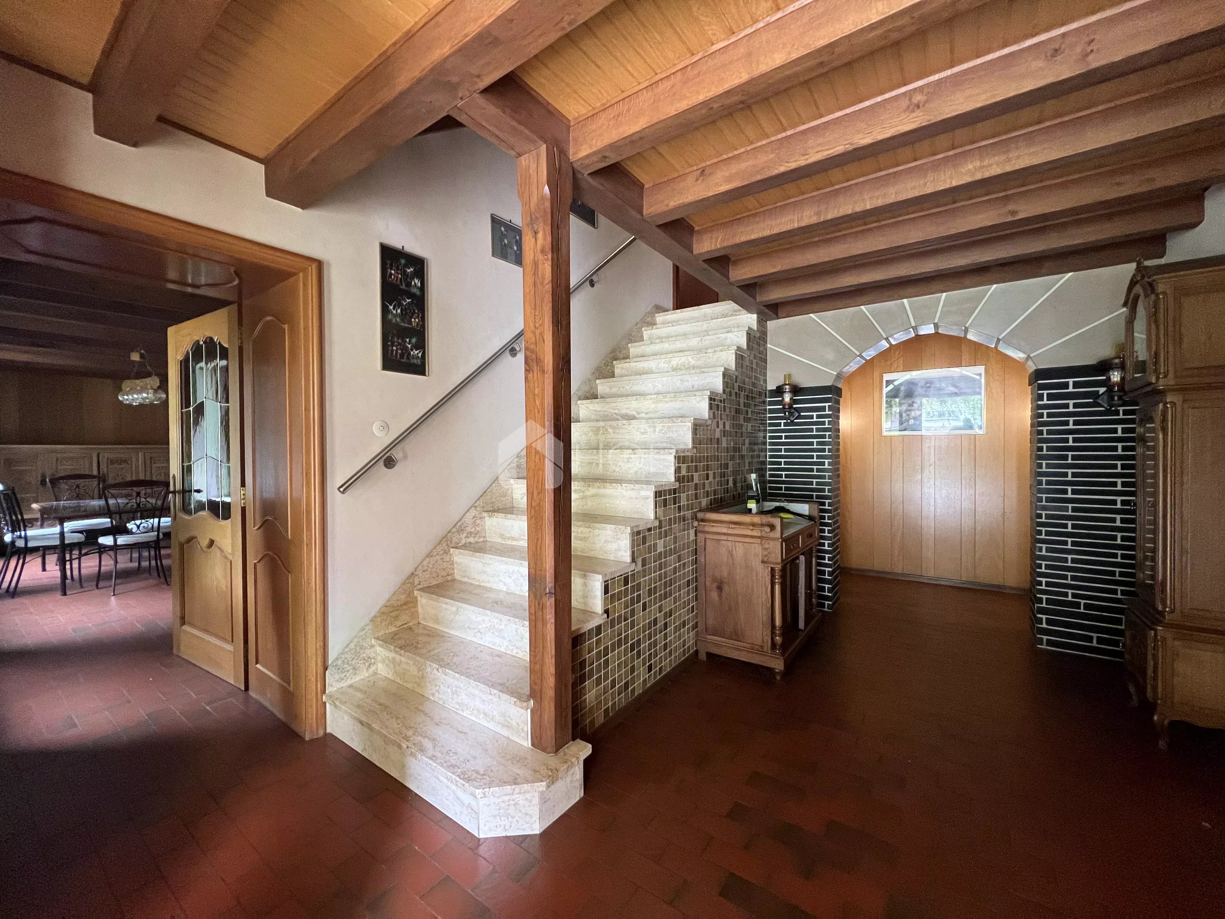 La structure du bâtiment est solide, et la distribution des pièces est spacieuse et bien pensée. Avec quatre à cinq chambres et trois salles de bain, la maison offre un espace généreux pour une famille ou un projet d’aménagement personnel.
