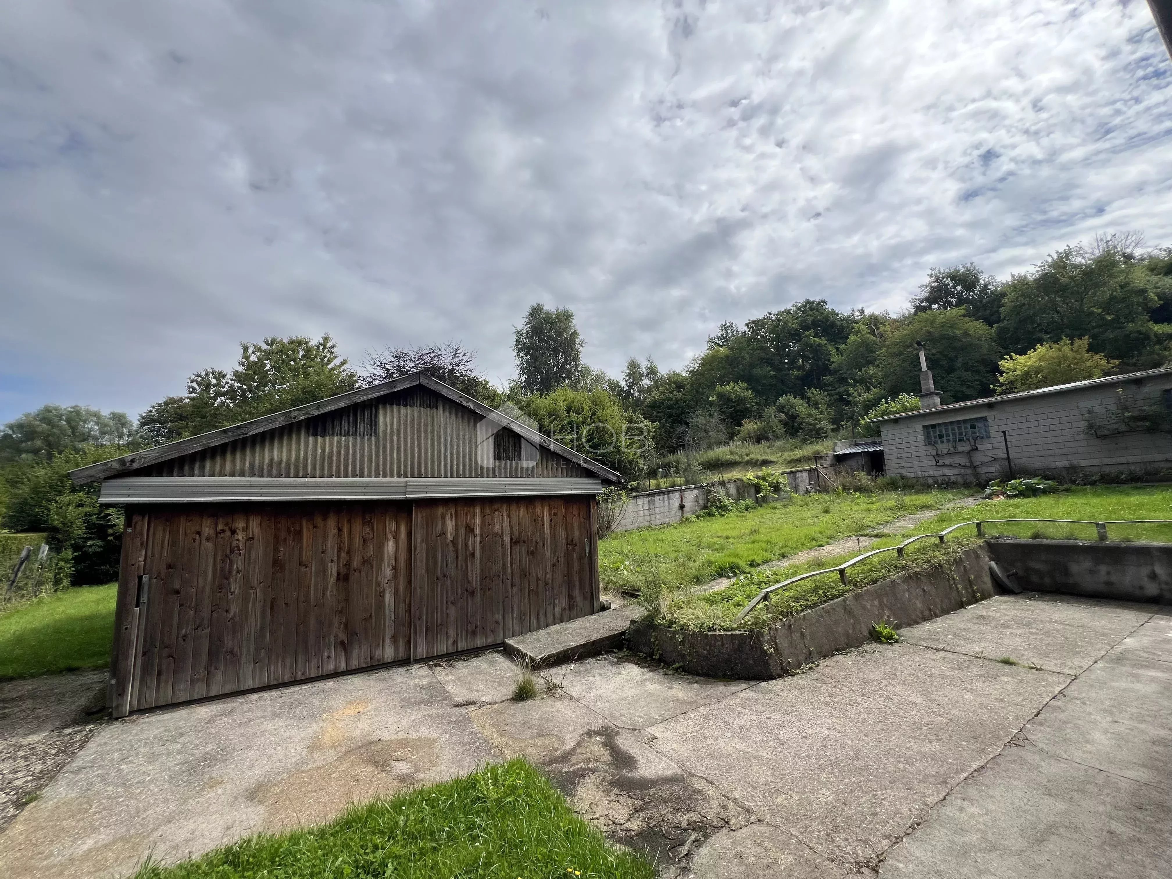 La cour arrière fermée avec remise complète l’ensemble – idéale pour le rangement ou des utilisations variées.