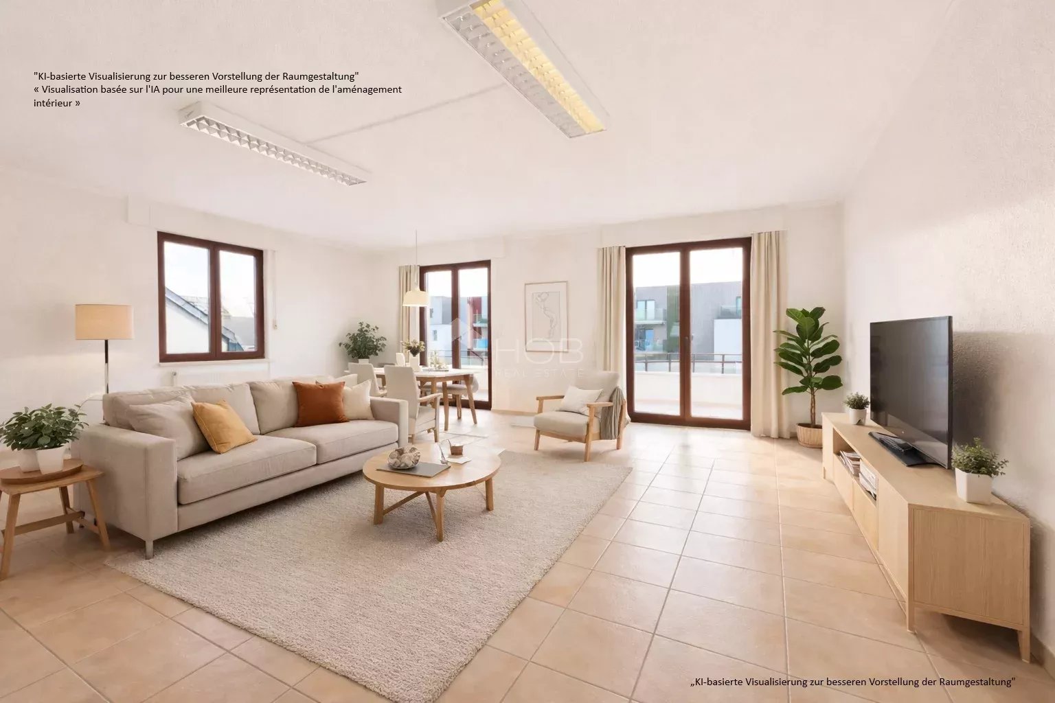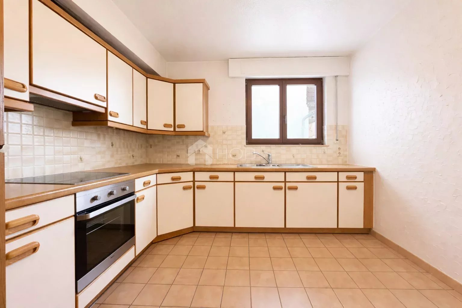 Avec une surface habitable d’environ 98 m², l’appartement offre des pièces spacieuses et bien agencées. Il dispose de deux chambres lumineuses, d’un salon et d’une salle à manger confortables avec accès direct à la terrasse, d’une cuisine séparée et d’une salle de bains.